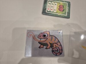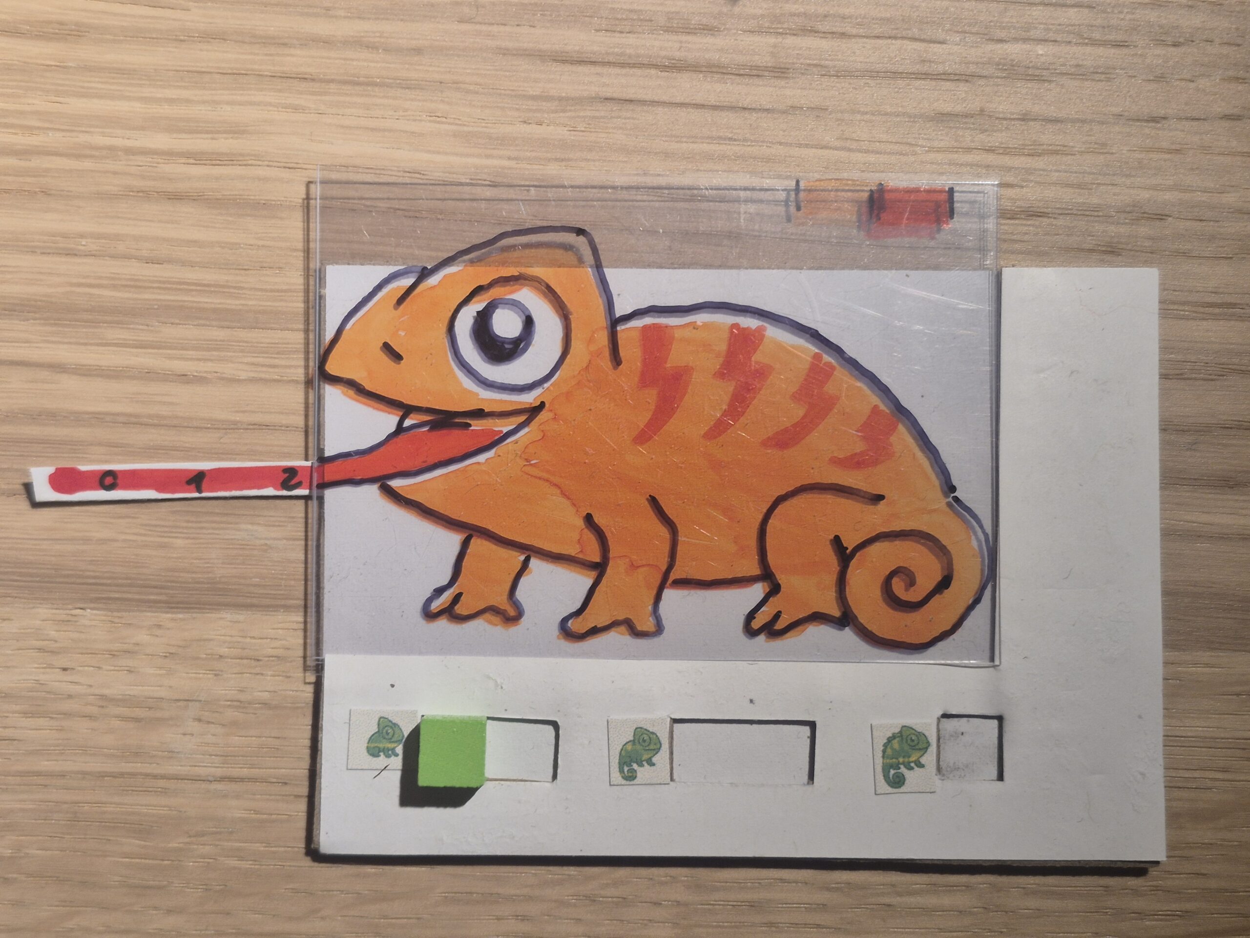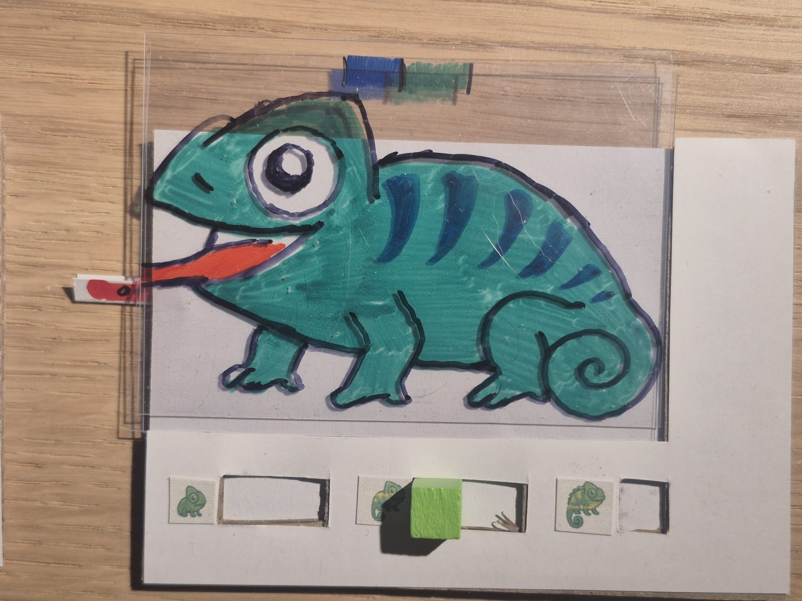 You really „design“ yourself (as chameleon) while playing by stacking unique transparent pattern-cards on top of each other.