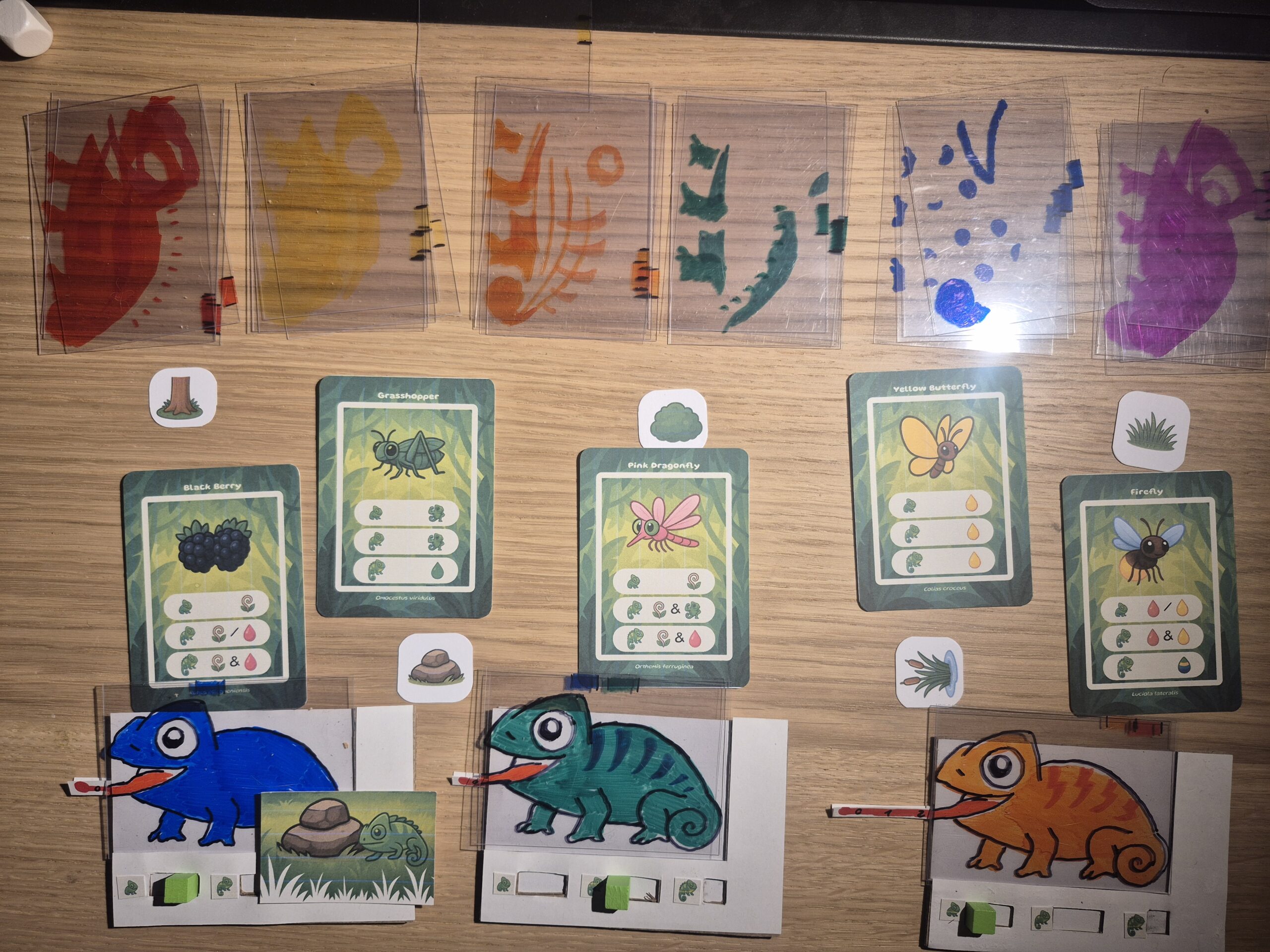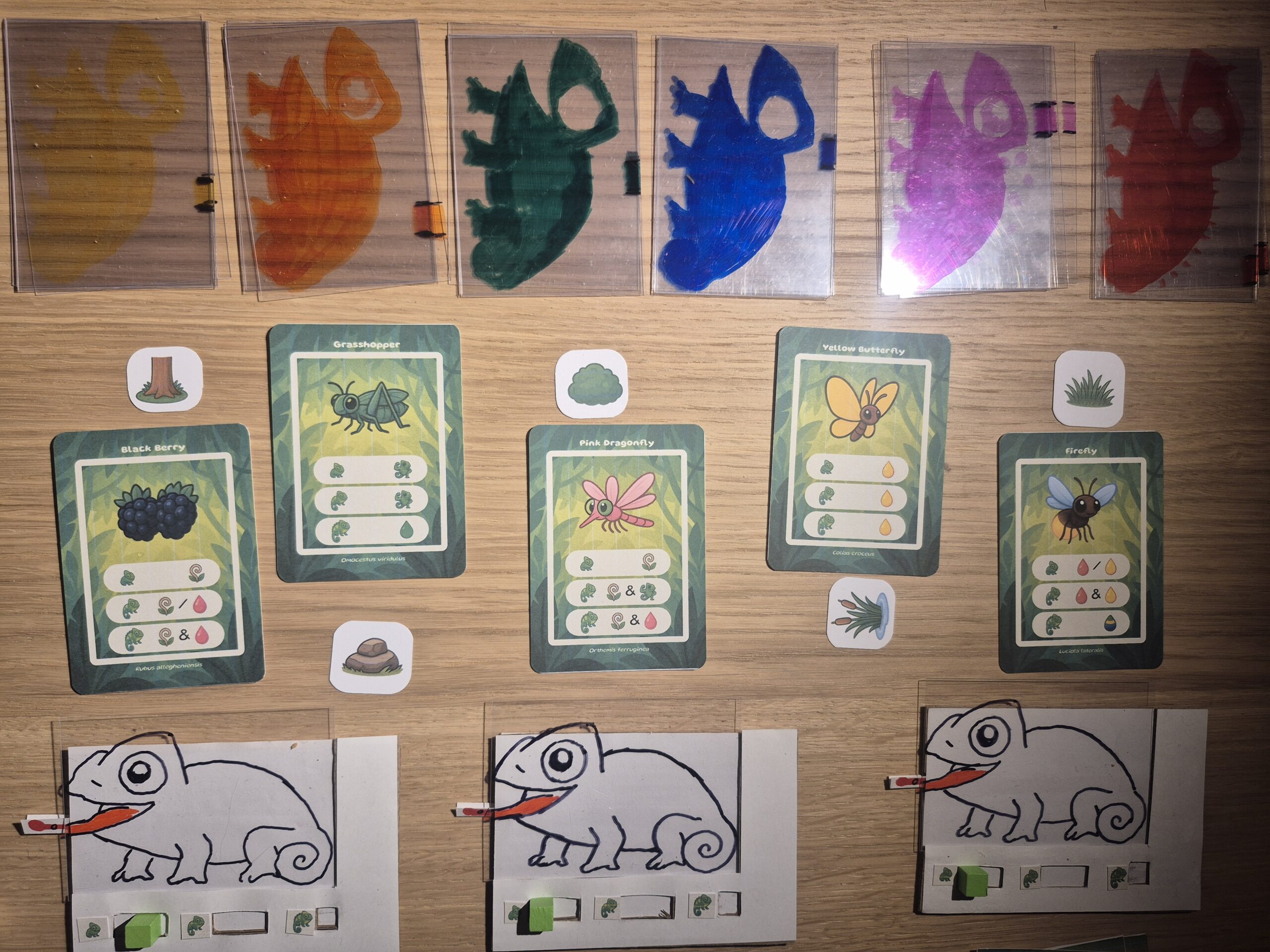 Winning Condition: The first chameleon to shine in all colors wins immediately. (On a tie, the group decides which chameleon looks the absolute bestest!)