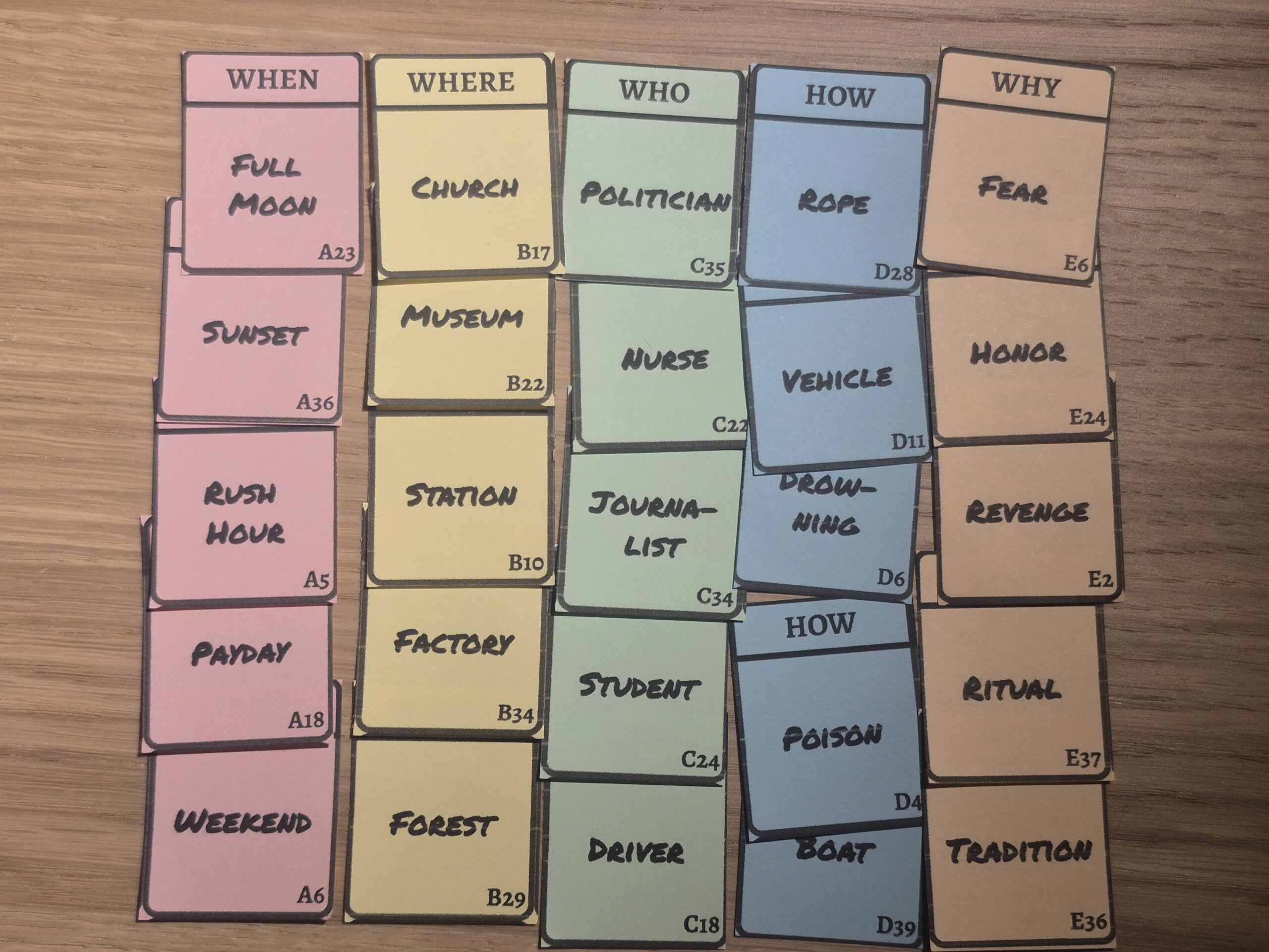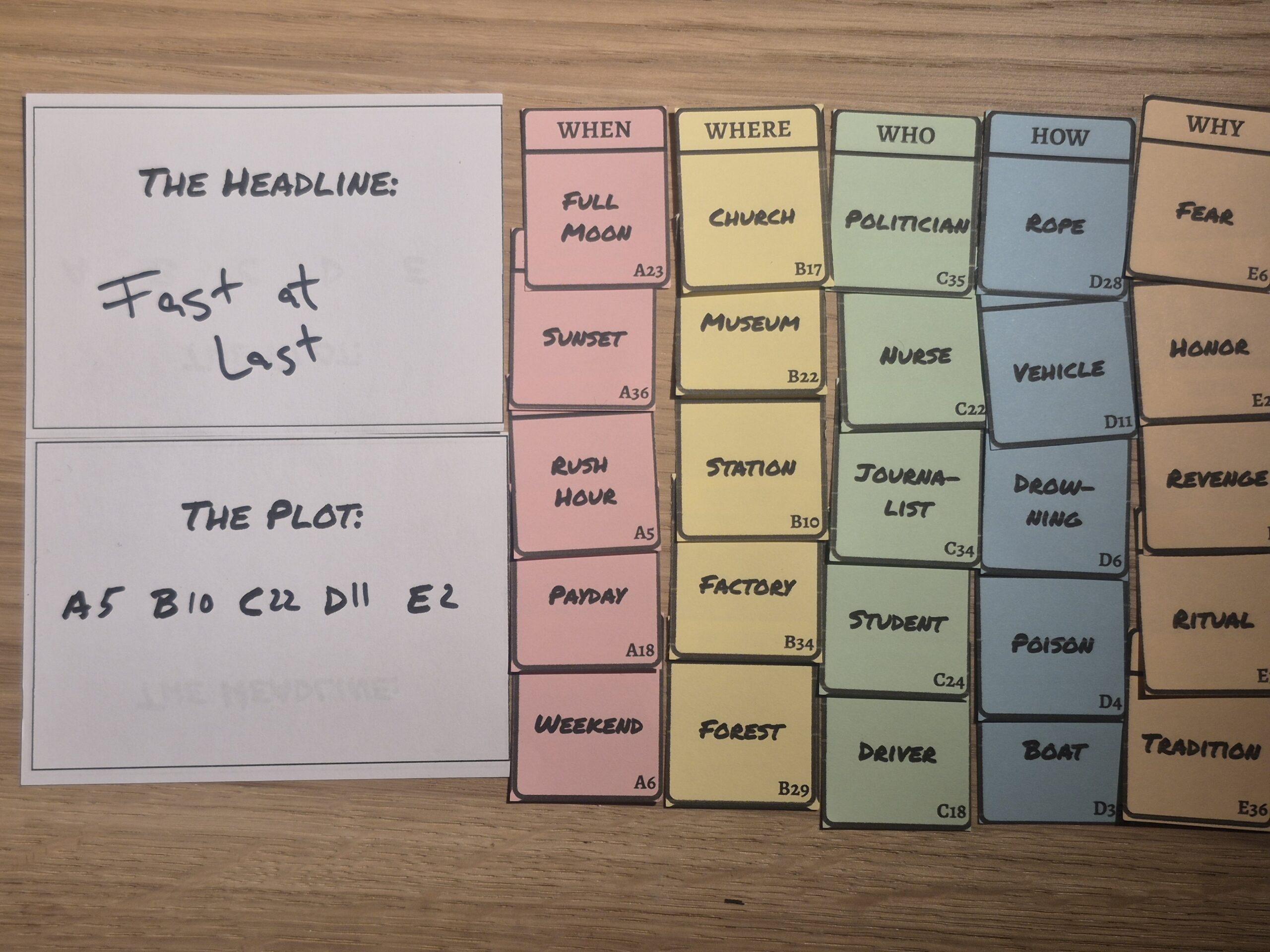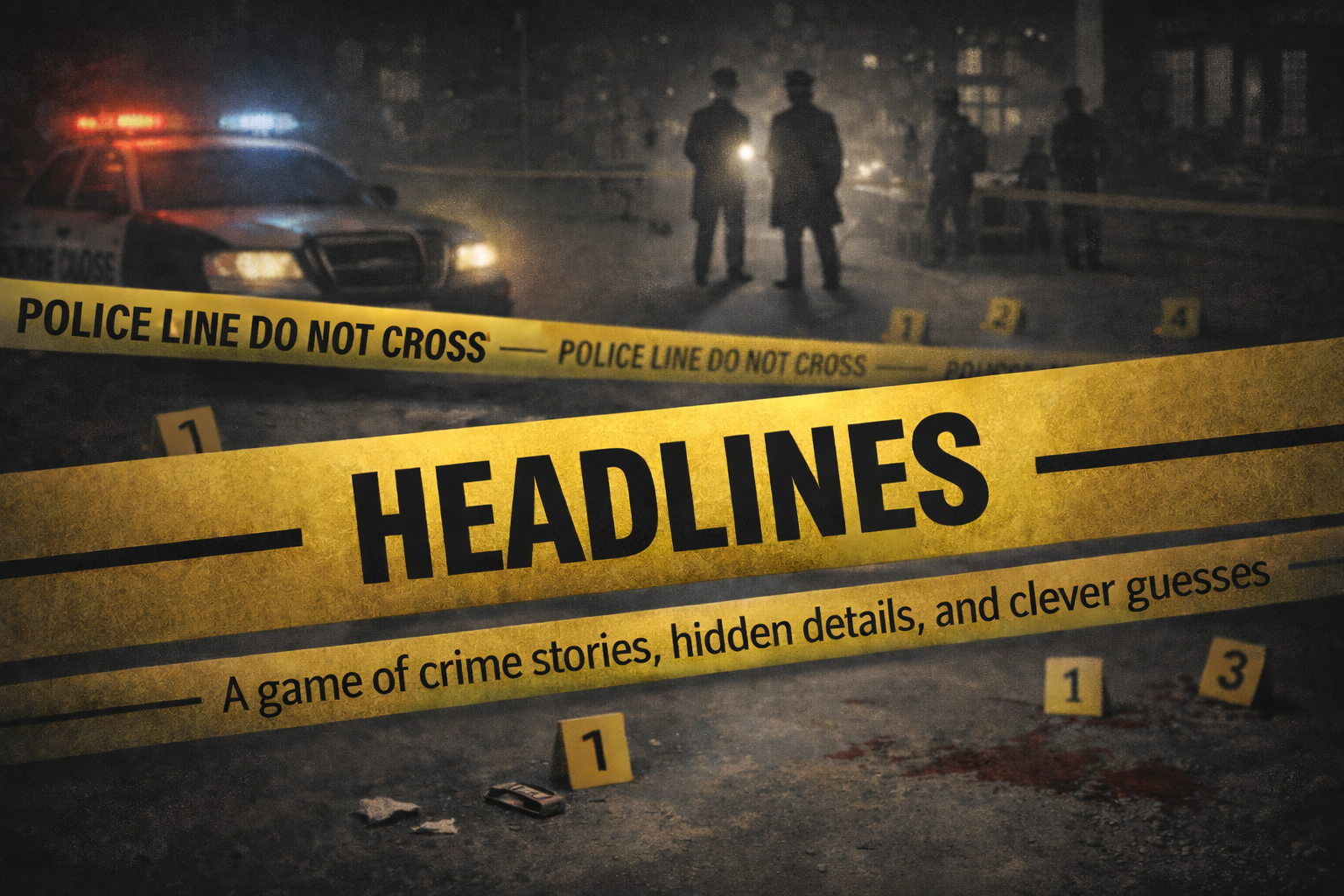 Headlines is a creative word-association and deduction game where players compress entire (crime) stories into clever headlines – and then try to reconstruct each other’s stories using those clues alone. It’s easy to learn, highly replayable, and built around a core mechanic that allows for effortless re-theming.